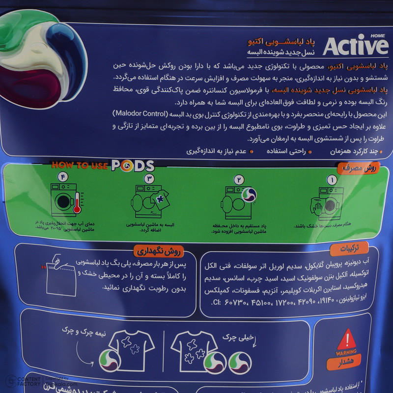 پاد ماشین لباسشویی (قرص ماشین لباسشویی ) اکتیو مدل All in 1 - بسته 15 عددی